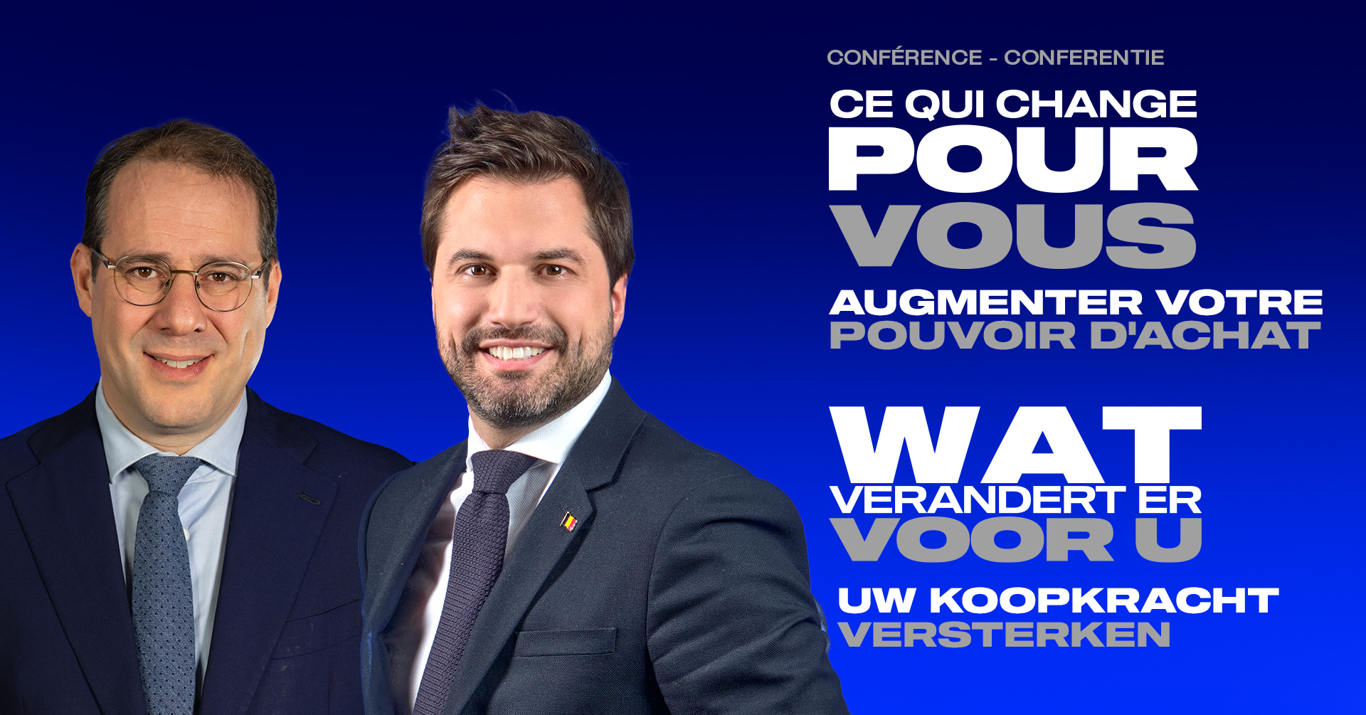 Notre président Georges-Louis Bouchez accompagné du Vice-Premier ministre et ministre du Travail David Clarinval vous expliqueront clairement nos réformes et seront à votre disposition pour échanger sur les actions du gouvernement.