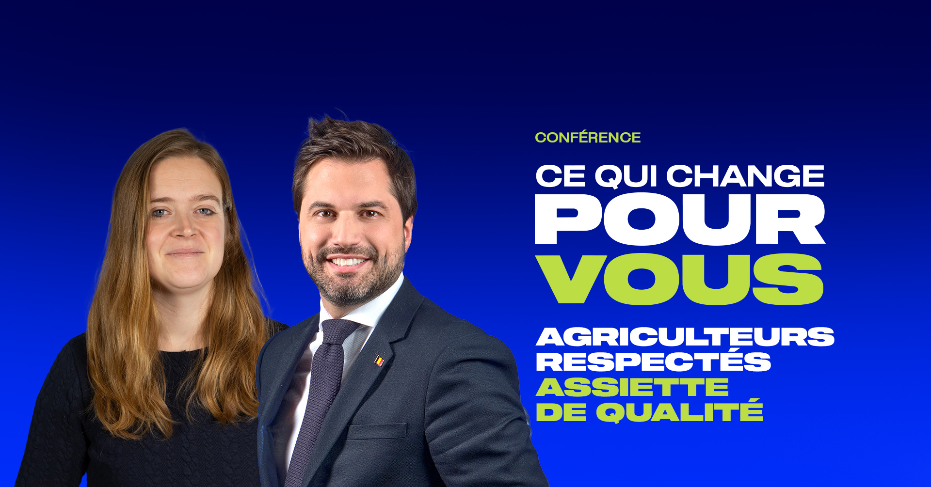 Notre président Georges-Louis Bouchez accompagné de la ministre wallonne de l’Agriculture Anne-Catherine Dalcq vous expliqueront clairement comment nos réformes et seront à votre disposition pour échanger sur les actions du gouvernement.