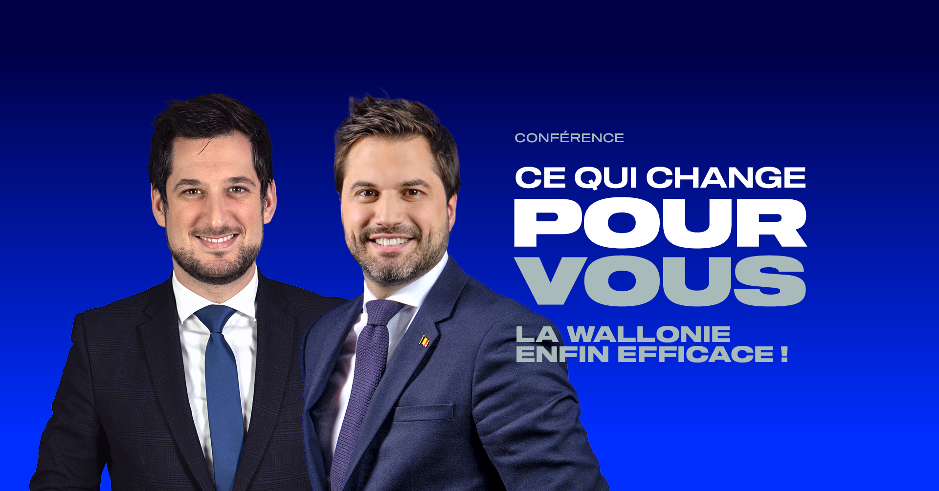 Notre président Georges-Louis Bouchez accompagné du Ministre-Président wallon Adrien Dolimont vous expliqueront clairement comment nos réformes et seront à votre disposition pour échanger sur les actions du gouvernement.