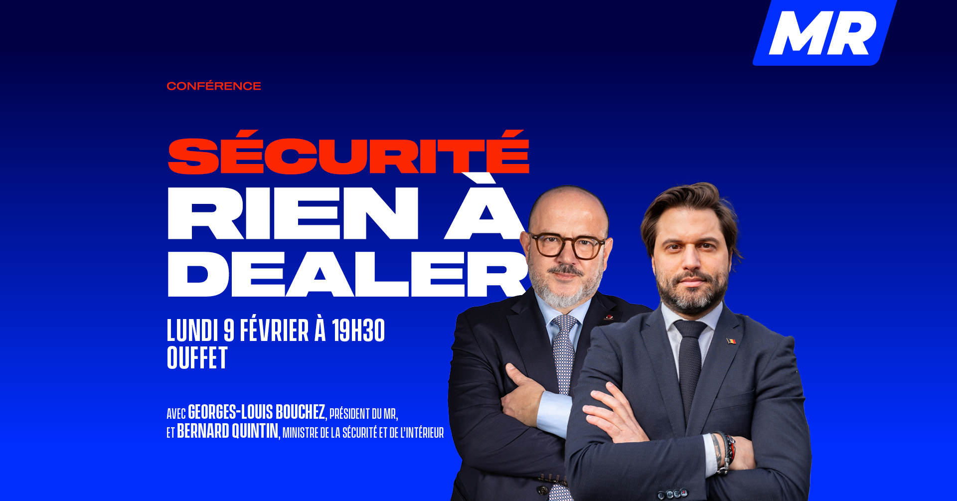 Le président du MR Georges-Louis Bouchez et le ministre de la Sécurité et de l’Intérieur Bernard Quintin, chargé de Beliris, viendront expliquer clairement les réformes engagées et échanger avec vous sur l’action du gouvernement fédéral.