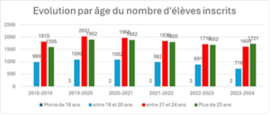 - De plus, la totalité des élèves sont des adultes. En effet, la moyenne d’âge est entre 25 et 30 ans.