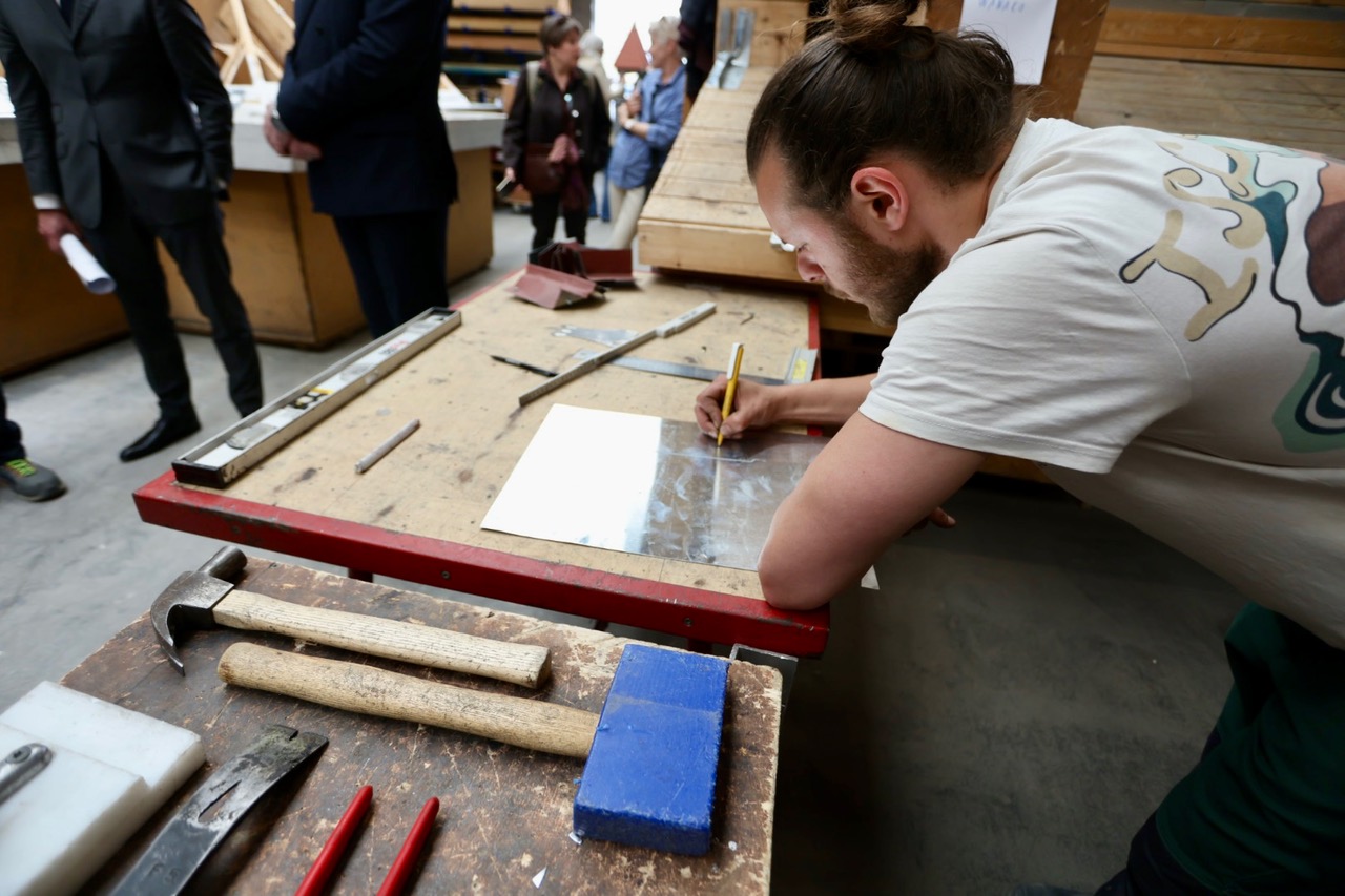 À cette occasion, Boris Dilliès a échangé avec les formateurs et les stagiaires des sections « coffreur » et « couvreur », deux professions actuellement classées parmi les métiers en pénurie en Région bruxelloise.
