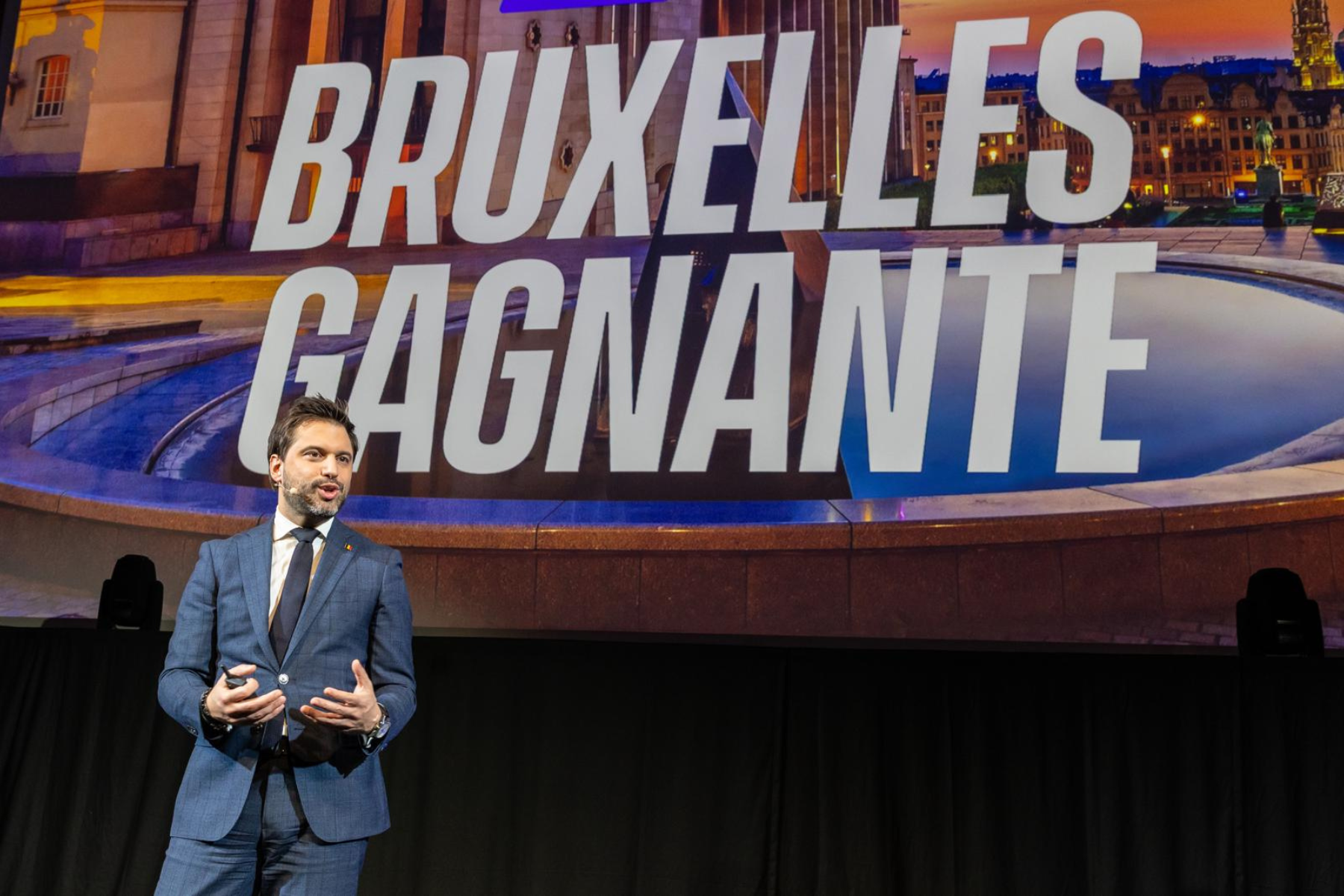 Parce que Bruxelles connaît un taux de chômage très important et pourtant, à 10 ou 15 minutes en transport en commun, nous arrivons dans une région qui connaît le plein emploi. Le renforcement de la langue sera essentiel. Là aussi, c’est un outil d’émancipation sociale. Et si Bruxelles est Bruxelles, c’est parce que c’est la maison de deux communautés principales du pays. Nous devons être fiers de cette caractéristique. Bruxelles, plus que jamais, ciment de la Belgique ! Bruxelles, ciment de la Belgique, mais aussi, je disais, capitale de l’Europe. Bruxelles va retrouver de l’ambition. Et ce n’est pas parce qu’elle est assise au premier rang que j’évoquerai un projet majeur pour la Ville de Bruxelles, mais un projet majeur pour la Région bruxelloise, qui est le projet NEO. Ce redéploiement du Palais du Heysel, le développement d’un palais des congrès, la réfection de nos palais d’exposition, le développement de logements, la capacité pour Bruxelles, en tant que capitale de l’Europe, d’être aussi une capitale de salons et de congrès. Car oui, mesdames et messieurs, je pense qu’en fait, ce sont les Bruxelloises et les Bruxellois qui connaissent peut-être le plus mal la valeur de notre capitale. Parce que Bruxelles, à travers le monde, c’est une marque. Bruxelles, à travers le monde, c’est un état d’esprit. Bruxelles, à travers le monde, c’est porteur de valeur culturelle. Bruxelles, à travers le monde, c’est sans aucun doute l’une des régions les plus connues. Alors, à travers cet accord de gouvernement, à travers la manière dont nous souhaitons conduire la région capitale à la ministre-présidence, nous voulons vraiment rendre cette fierté, rendre cette dynamique, arrêter de voir Bruxelles comme l’enfant malade du pays qui souffrirait d’insécurité, de malpropreté, de problèmes sociaux. Faire au contraire, la faire redevenir cette capitale dont tous les Belges sont fiers. Alors aujourd’hui, dans cet accord de gouvernement, ce n’est pas qu’une victoire pour les Bruxelloises et les Bruxellois. C’est avant tout une victoire pour tous les Belges. Parce que quand on aime son pays, on doit aimer sa capitale. Et dites-vous une chose, aujourd’hui, je ressens un profond sentiment de soulagement. Mais néanmoins, ça ne doit pas occulter les 613 jours de honte pour la classe politique et nos institutions. Ce soir, personne ne doit être fier des mois et des mois qui se sont écoulés. Nous devons agir pour qu’une telle situation ne puisse plus se reproduire. Parce qu’elles ne font le lit que des extrémistes de gauche et de droite. Nous devons faire en sorte de retrouver de l’enthousiasme. Nous devons abandonner les petits jeux politiciens qui ont été tellement à l’œuvre durant cette période et retrouver cette capacité qui est quand même le ciment de la politique, cette envie du débat, de l’échange d’arguments et de construire, de bâtir ensemble, de faire en sorte d’être fier de porter des projets. Et ce soir, je peux vous dire, je suis le ministre le plus fier de Bruxelles. Je suis le ministre… Je suis le ministre le plus amoureux de notre capitale. Parce que vraiment, mesdames et messieurs, et je sais que vous êtes quasi exclusivement des Bruxellois dans la salle, réalisez la belle région que nous avons. Réalisez les atouts que nous avons. Alors, pendant 22 ans, on a pu légitimement être déçus. On a pu parfois même être en colère de voir la manière dont la région se déployait.