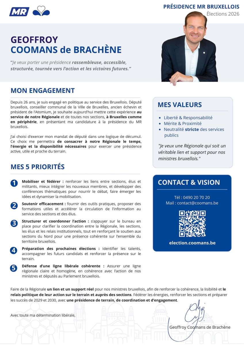 Le bureau de vote se tiendra à la Présidence du Mouvement Réformateur (Avenue de la Toison d’Or, 84 – 86 à 1060 Bruxelles) aux horaires suivants :